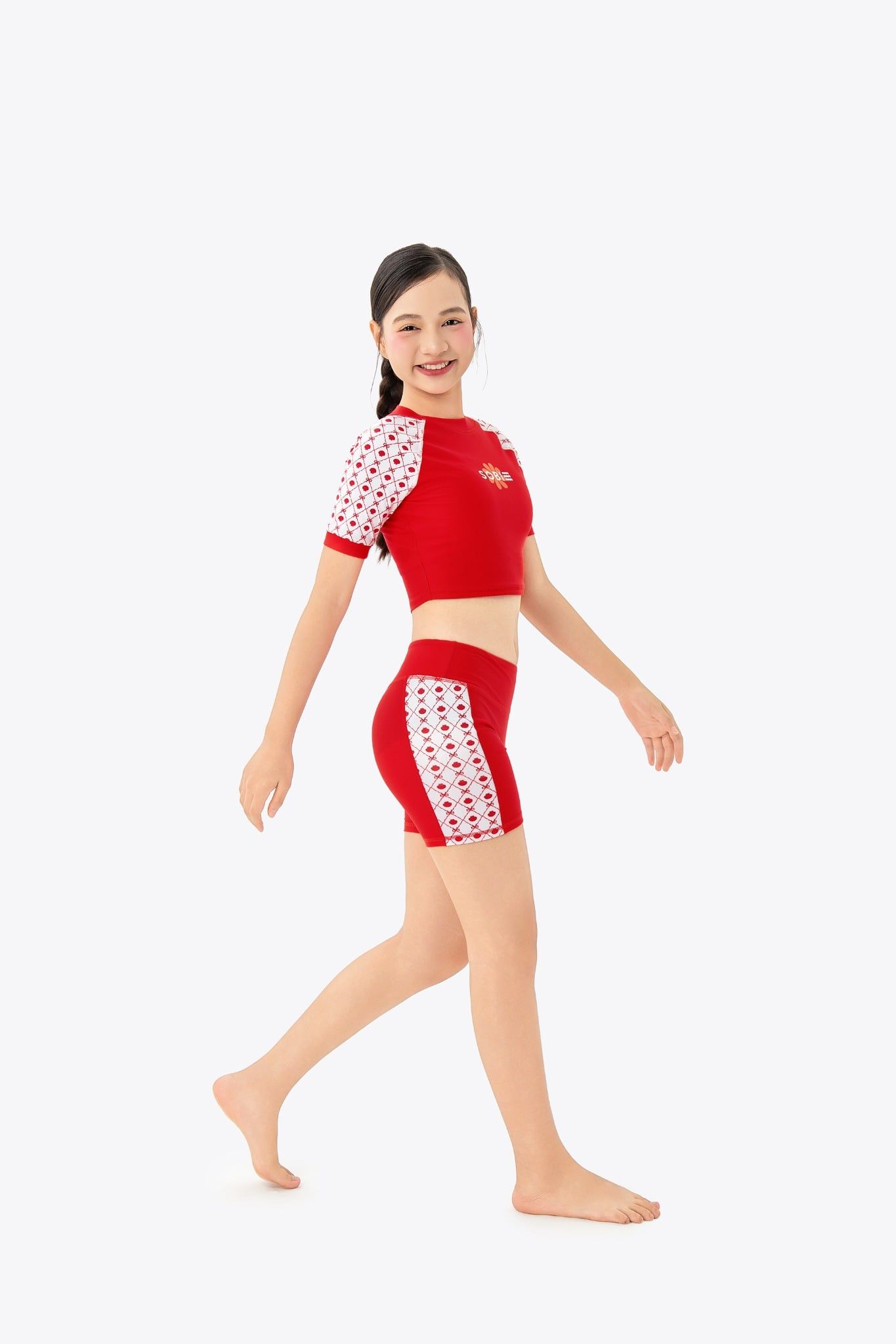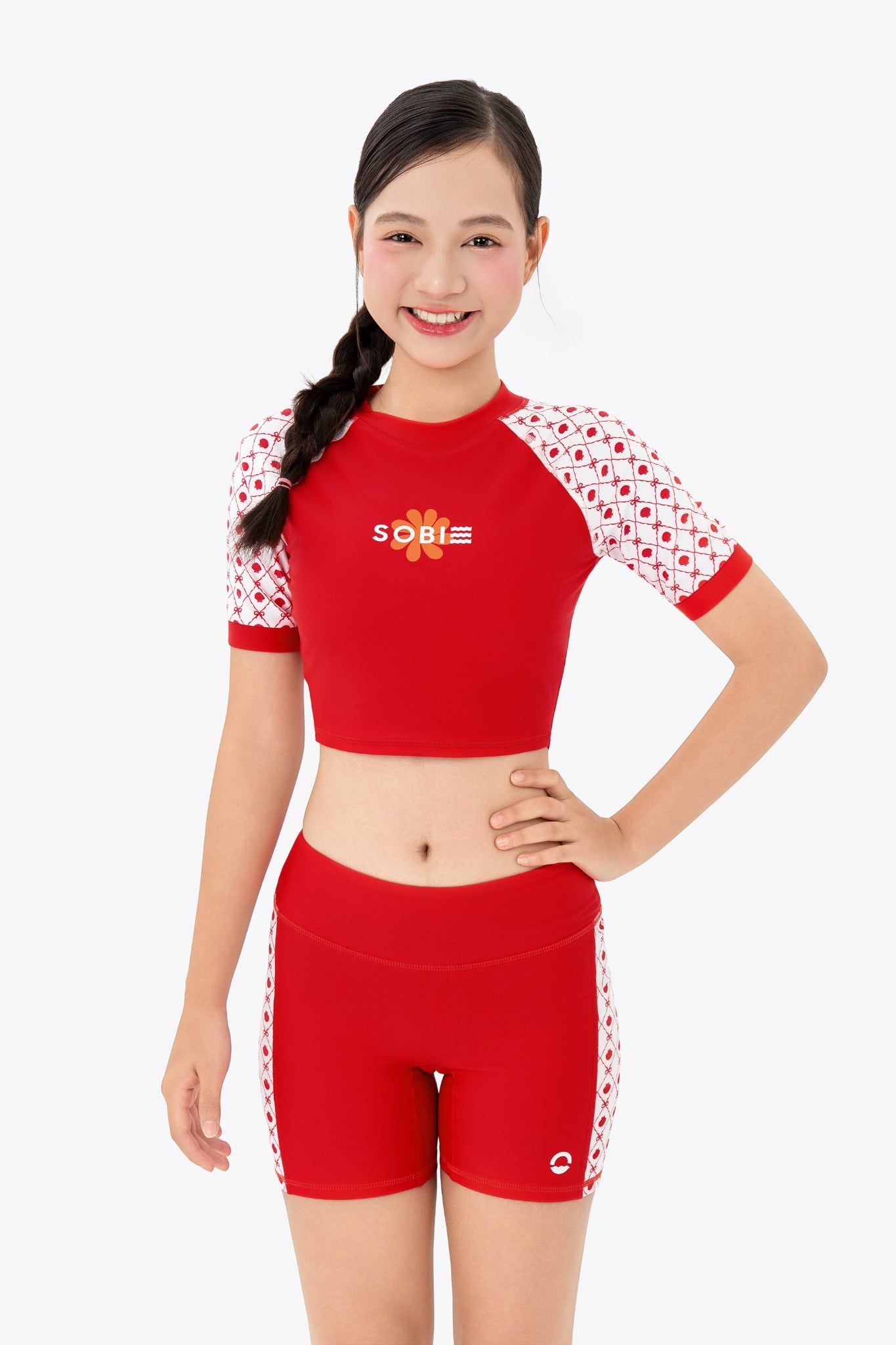Áo bơi bé gái SOBIE croptop tay ngắn Sibling Ruby