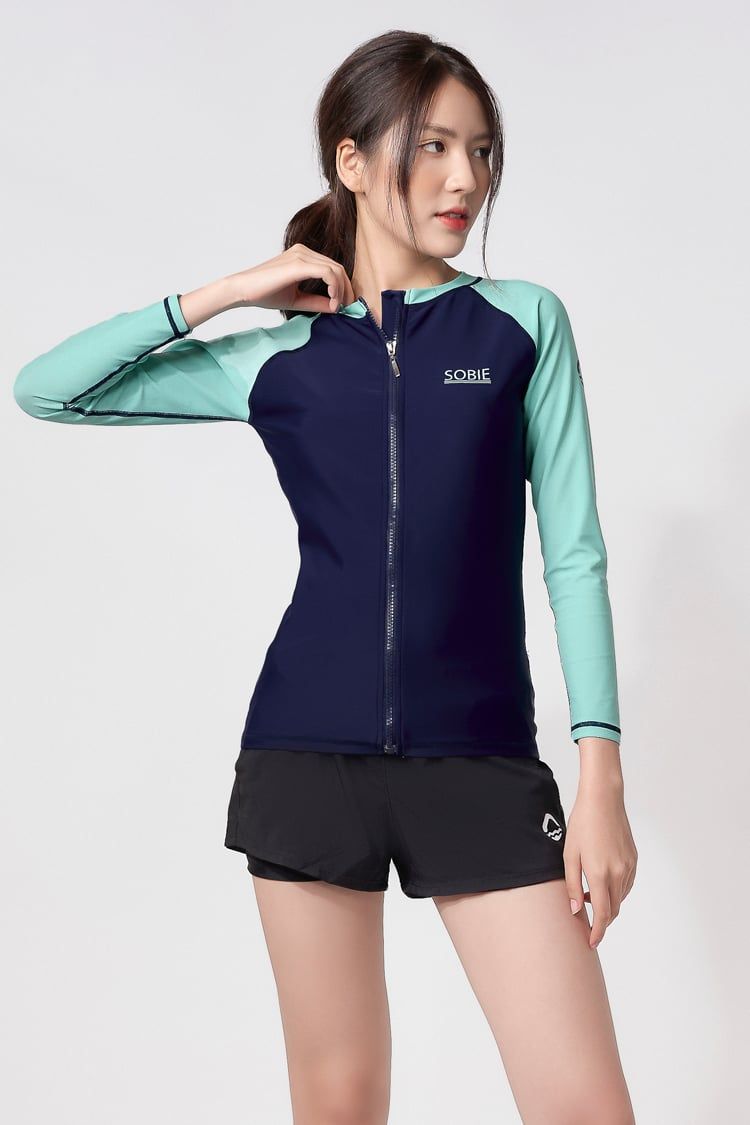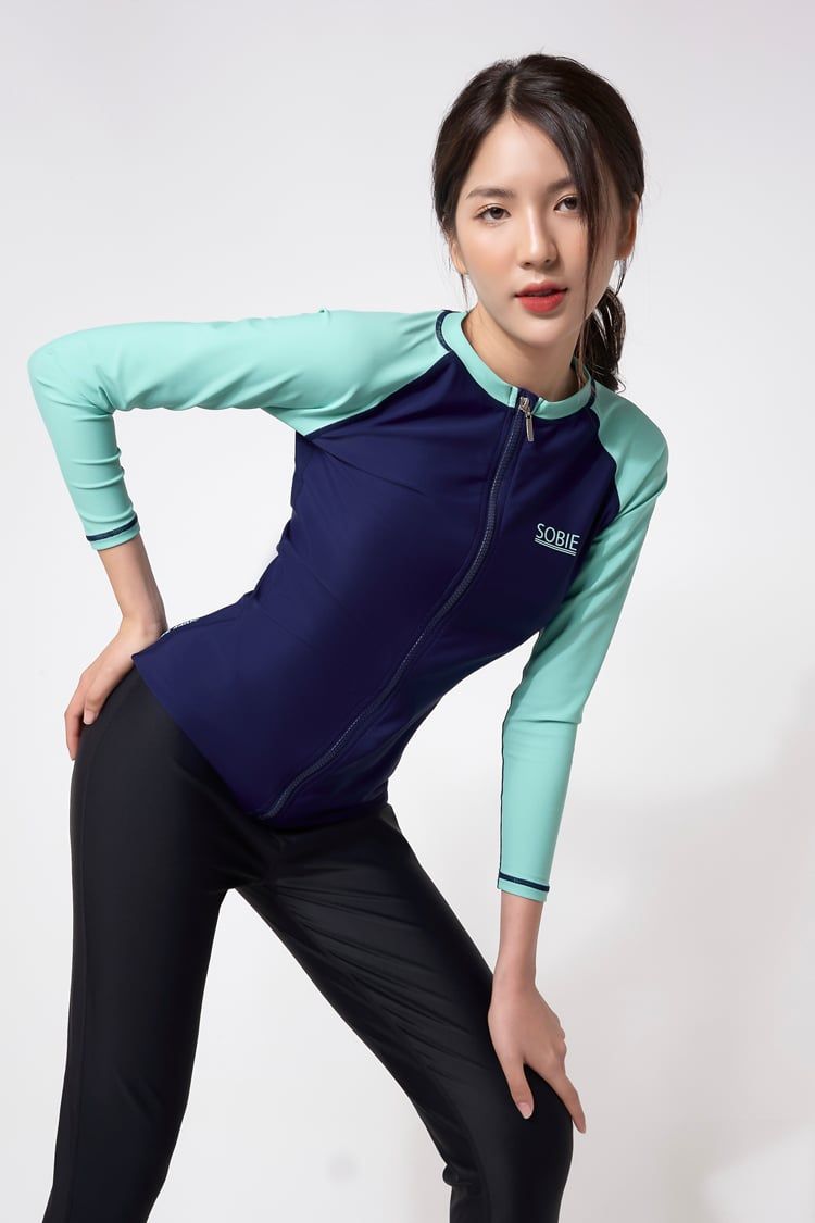 Áo Bơi Nữ Tay Dài Zipper Green Mixed Top