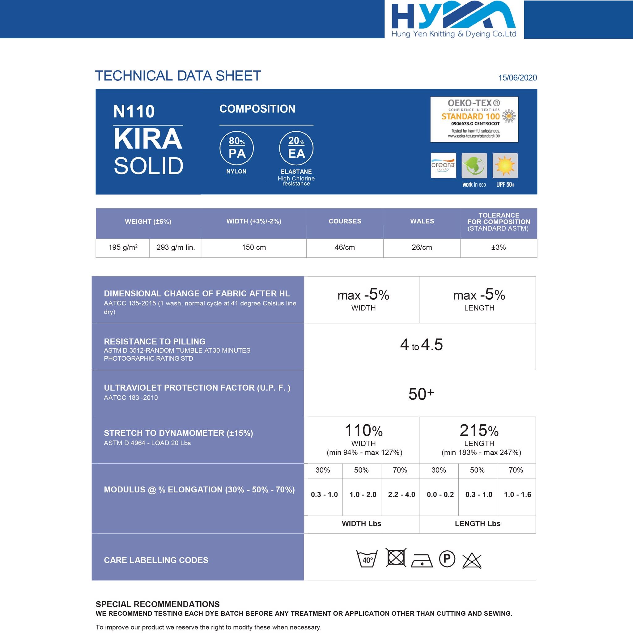 - SOBIE sử dụng chất liệu KIRA, với thành phần chính 80% Polyamide, 20% Elastane. Các thông số được nhà sản xuất cung cấp.