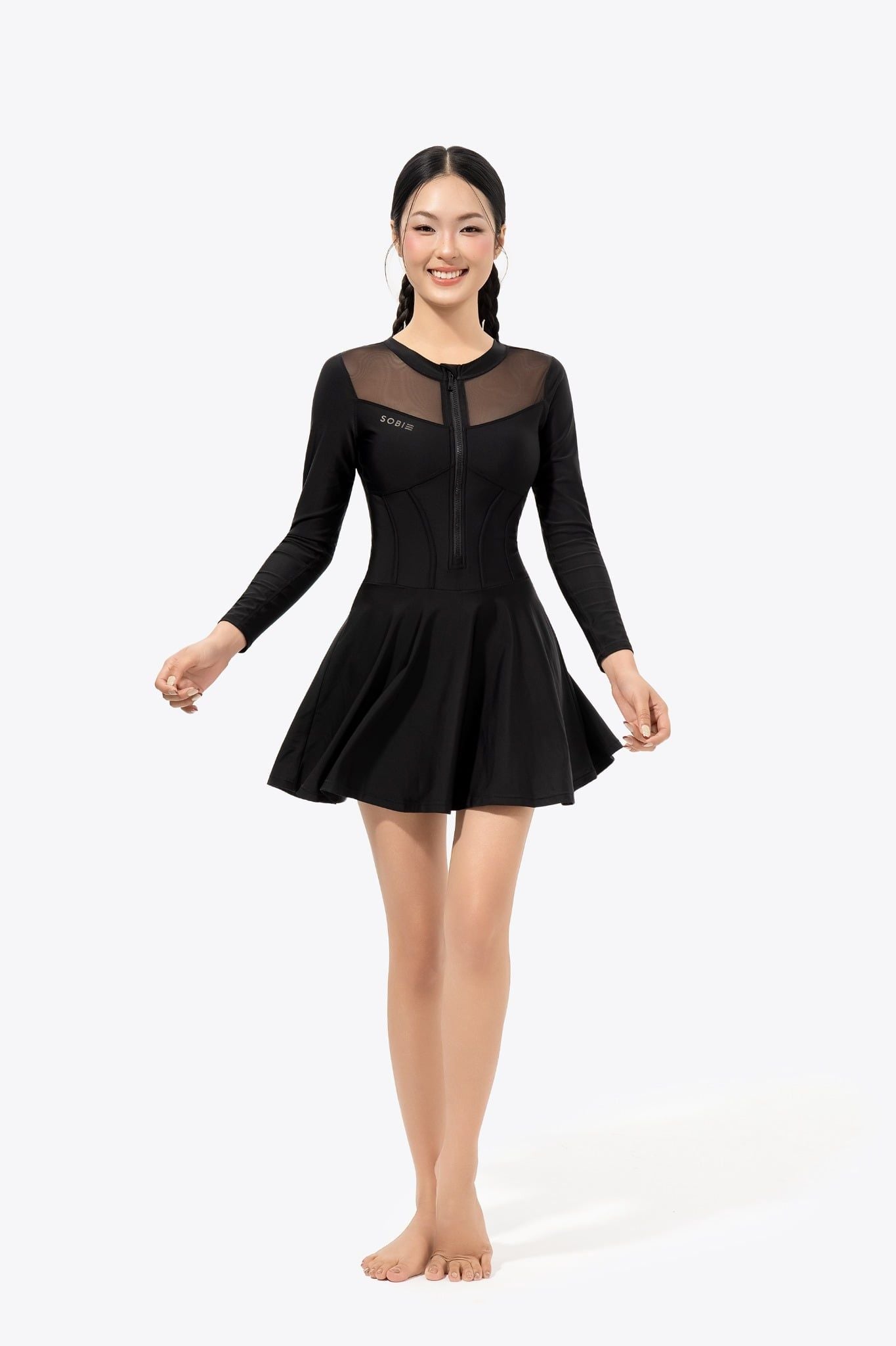 Đồ bơi nữ liền thân váy tay dài khoá kéo kín đáo và chống nắng Ori Desi - Che phủ cao, giữ sự nữ tính và thanh lịch
